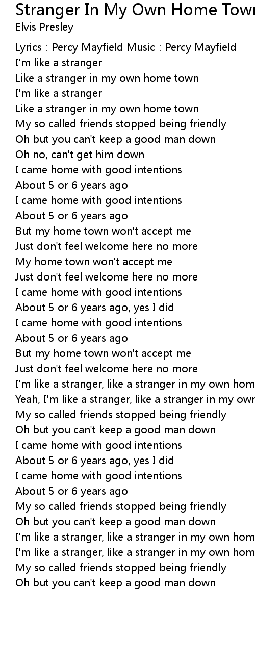 | I' m like a stranger, like a stranger in my own home town | |