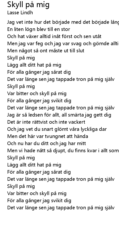 | Jag r s ledsen f r allt, all sm rta jag gett dig | |