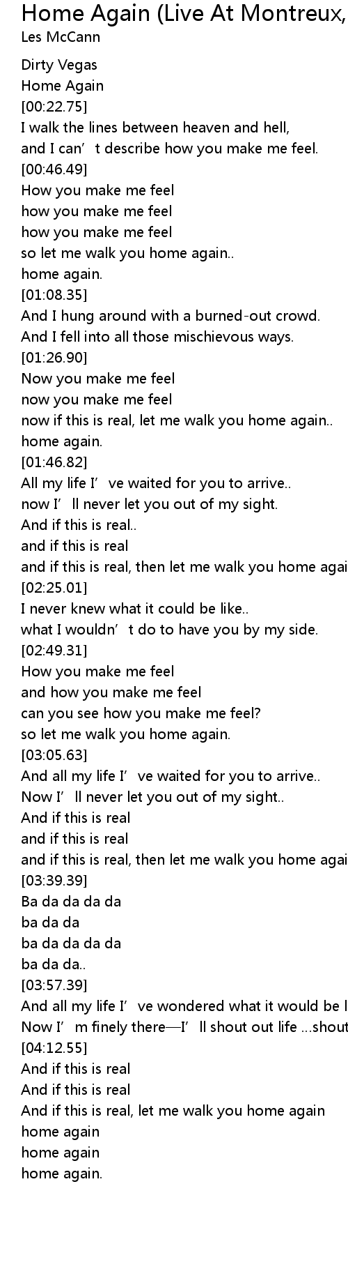 | [01:35.04] | now if this is real, let me walk you home again.. |