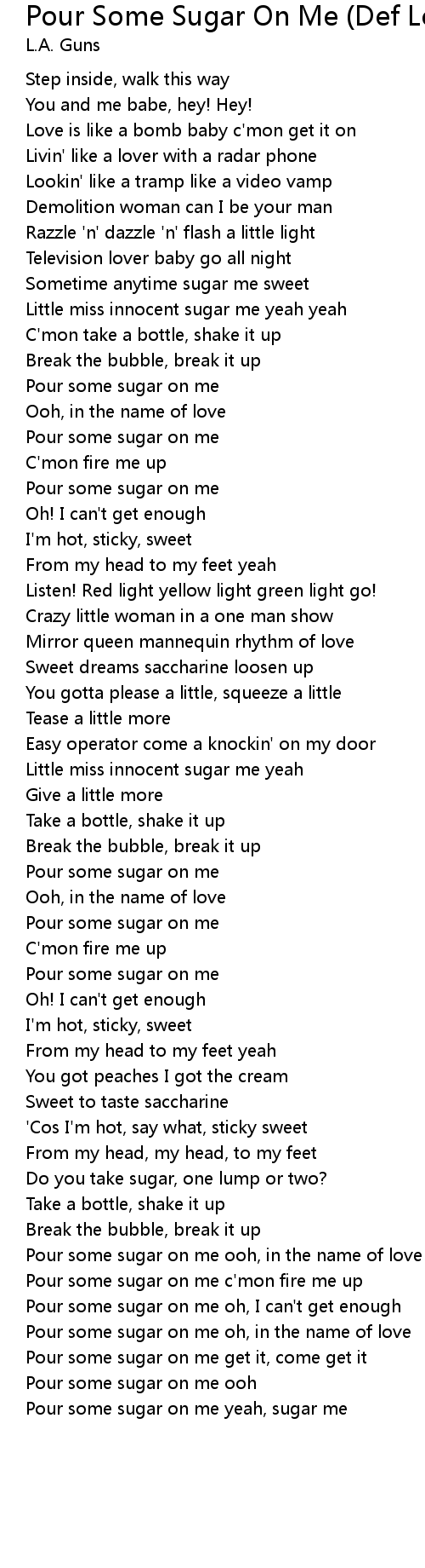 Pour some sugar on me yeah, sugar me |