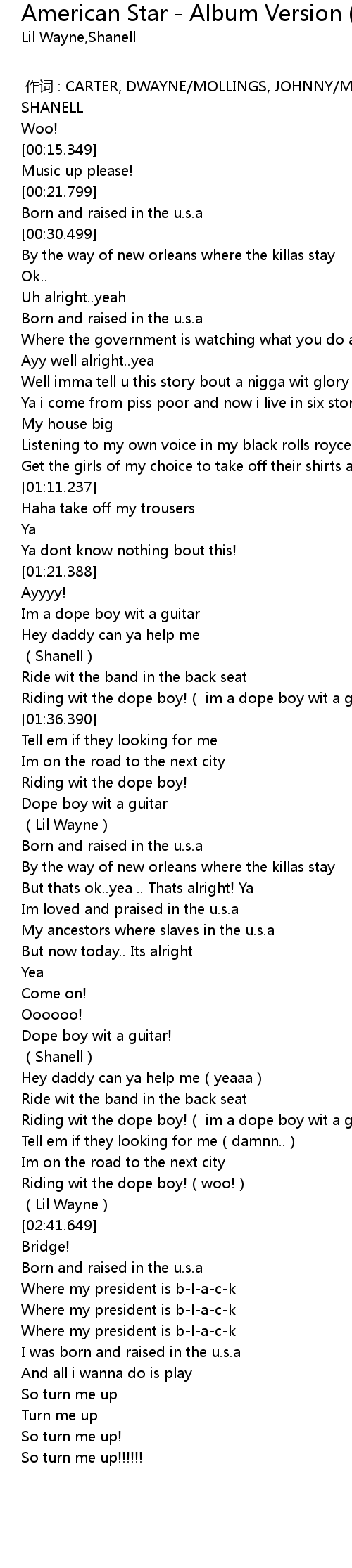 | [02:26.299] | Riding wit the dope boy! im a dope boy wit a guitar |