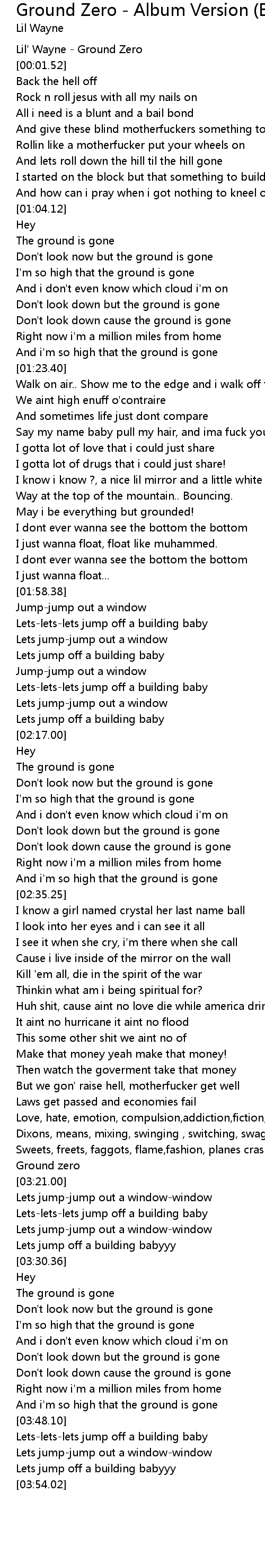 | [00:00.52] | Lil' Wayne - Ground Zero |