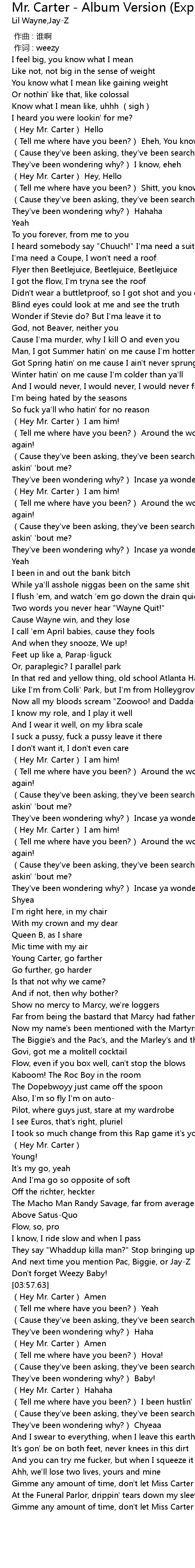| [00:48.77] | (Hey Mr. Carter) Hey, Hello |