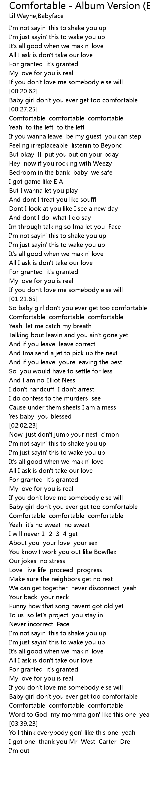 | [03:25.69] | Baby girl don't you ever get too comfortable |