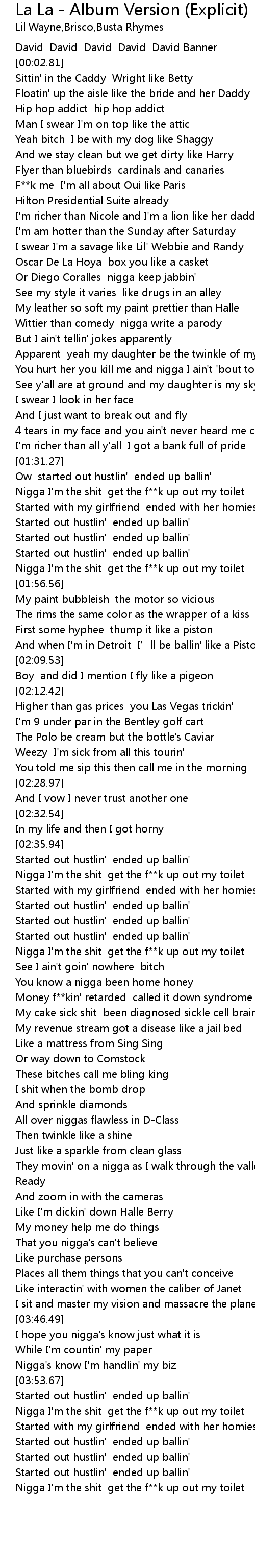 | [01:37.88] | Nigga I' m the shit get the f k up out my toilet |