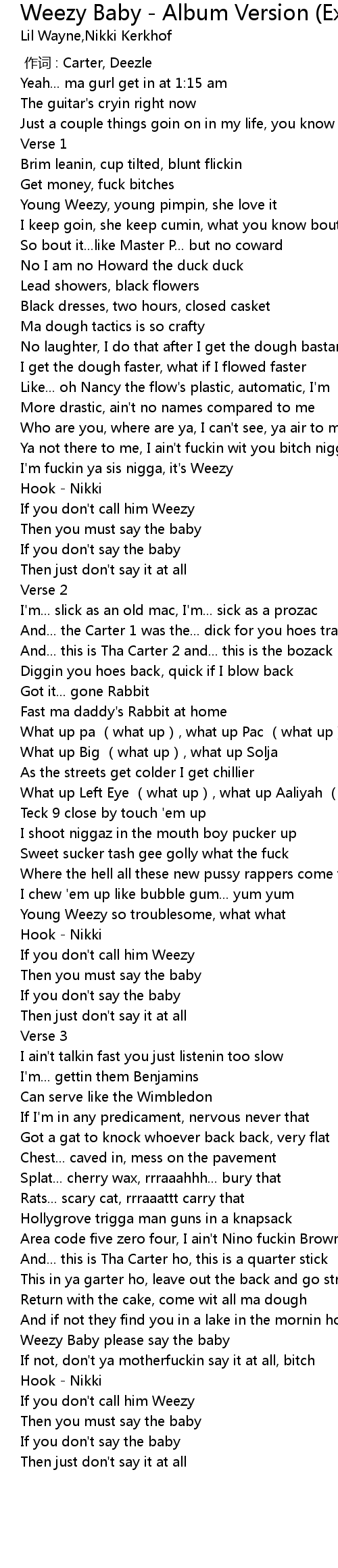 | [00:59.89] | I'm fuckin ya sis nigga, it's Weezy |