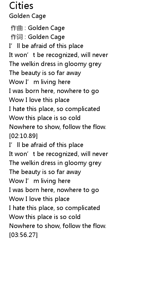 | [00:00.00] | zuò qǔ : Golden Cage |