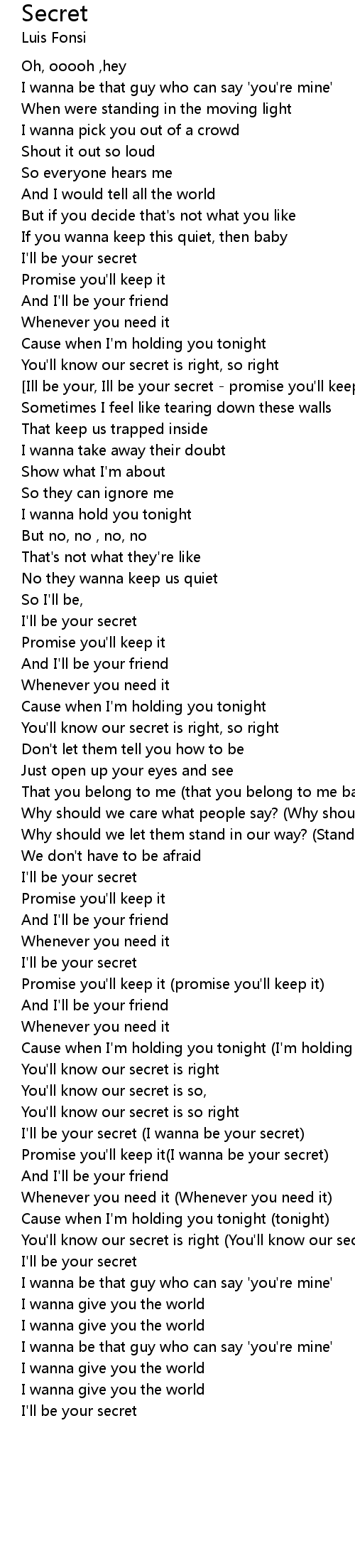 [Ill be your, Ill be your secret - promise you'll keep it] |