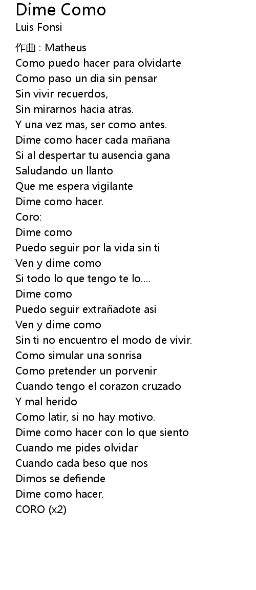 | Song | Dime Como |