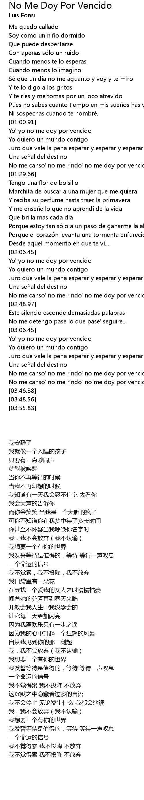 | [03:34.76] | No me canso' no me rindo' no me doy por vencido |