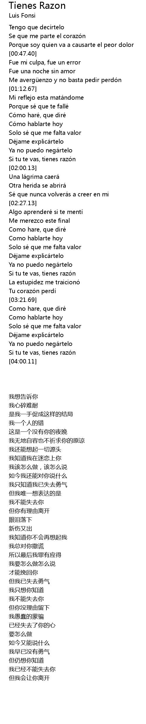 | [03:47.53] | Si tu te vas, tienes razón |