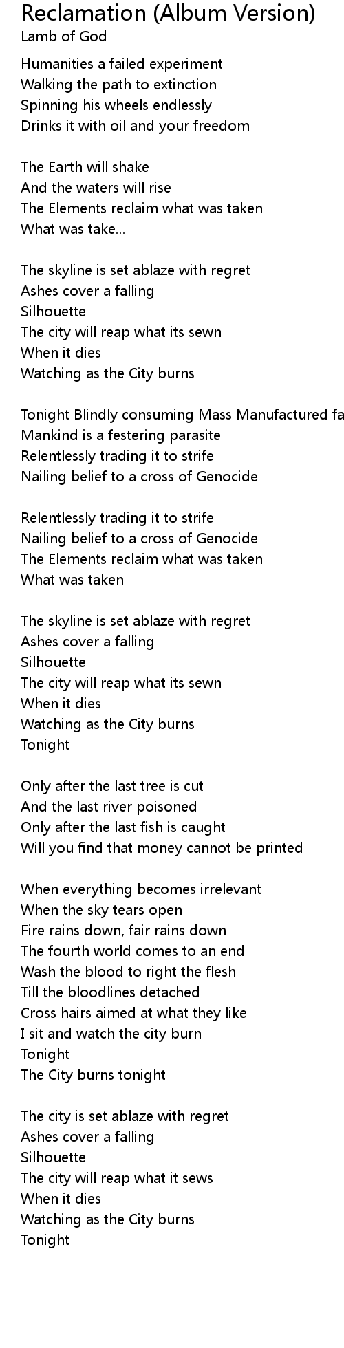 The city is set ablaze with regret |