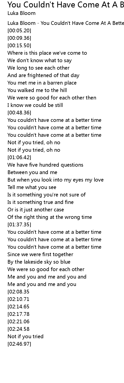 [02:26.89][02:08.35] You couldn't have come at a better time