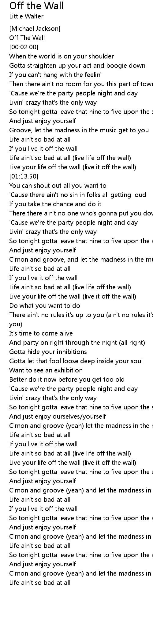 [01:08.00] Life ain't so bad at all (live life off the wall)