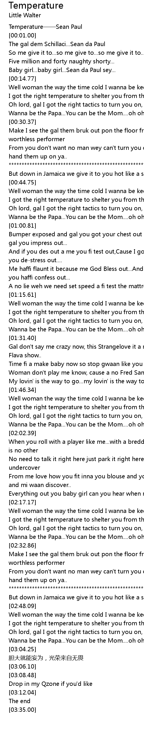 | [00:11.17] | Baby girl... baby girl... Sean da Paul sey... |