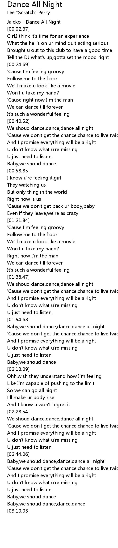 Baby,we shoud dance,dance,dance all night |