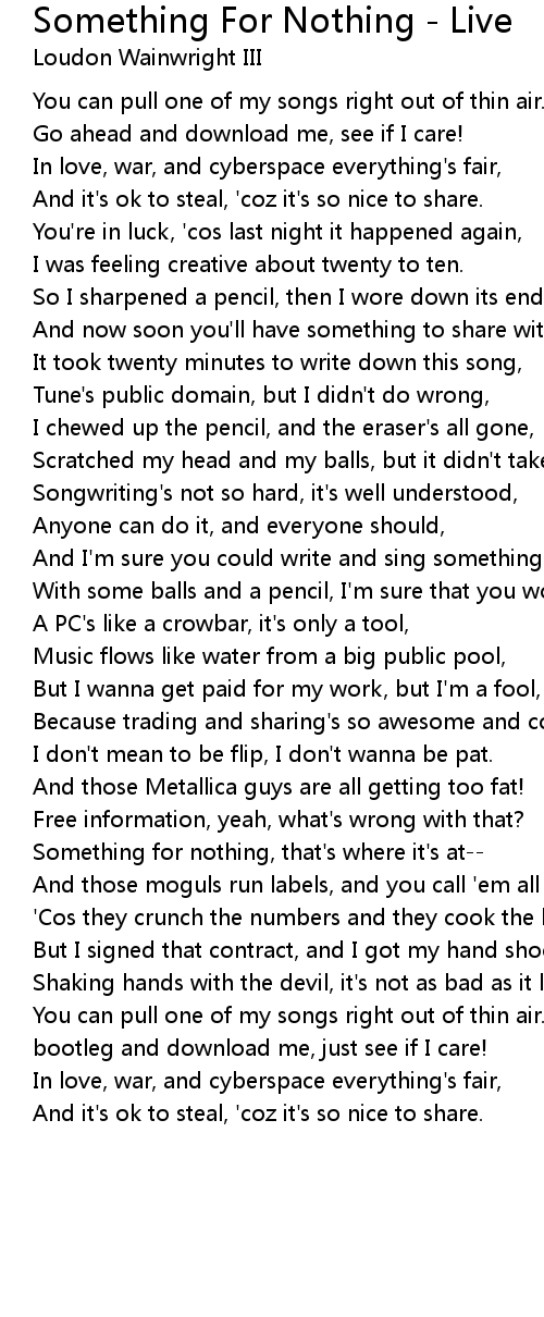 Something for nothing, that's where it's at-- |