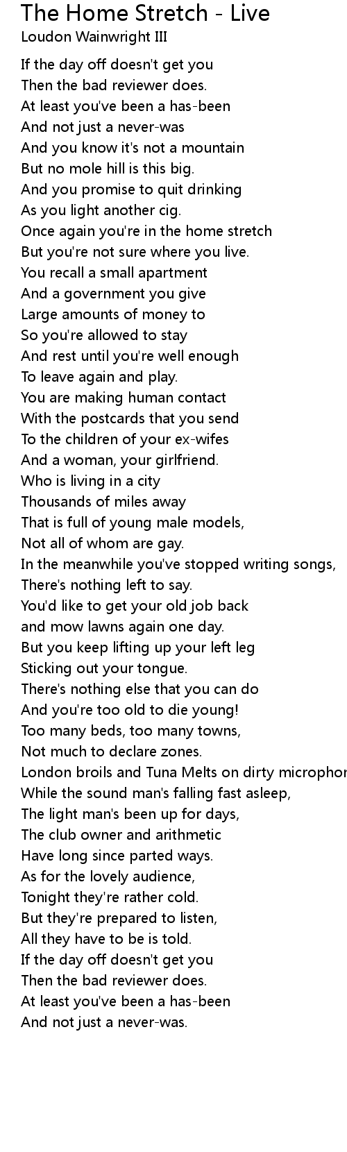 Once again you're in the home stretch |