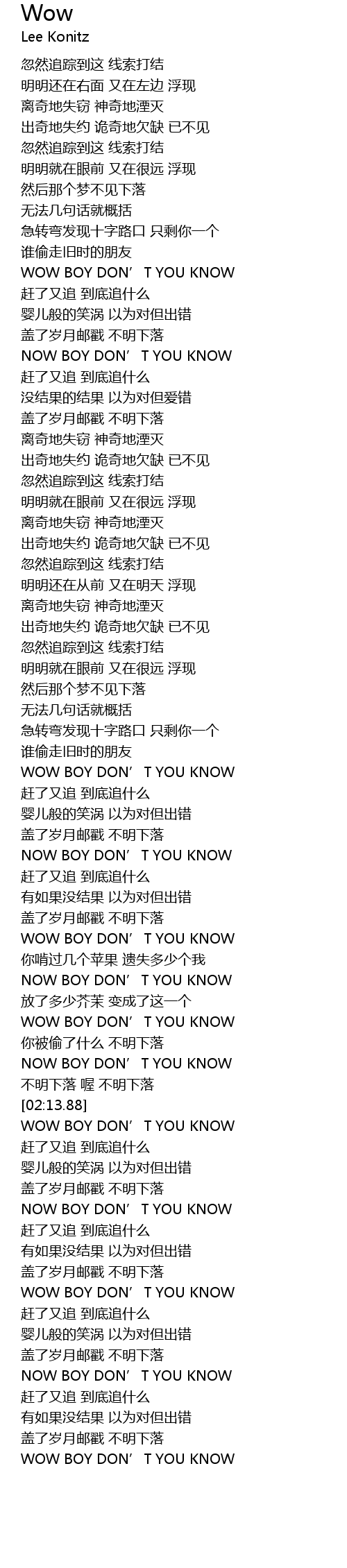 | [02:14.23] | WOW BOY DON' T YOU KNOW |