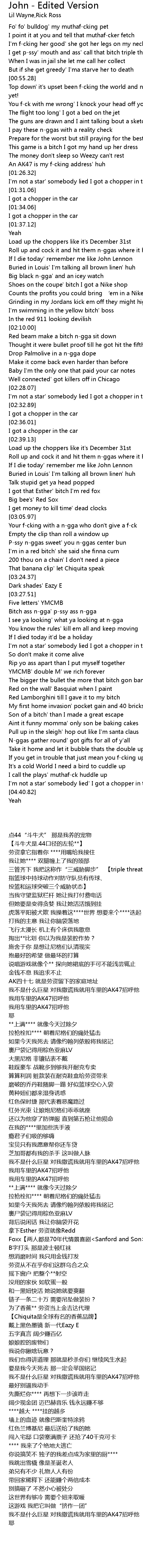 | [03:06.53] | Your f-cking with a n-gga who don't give a f-ck |