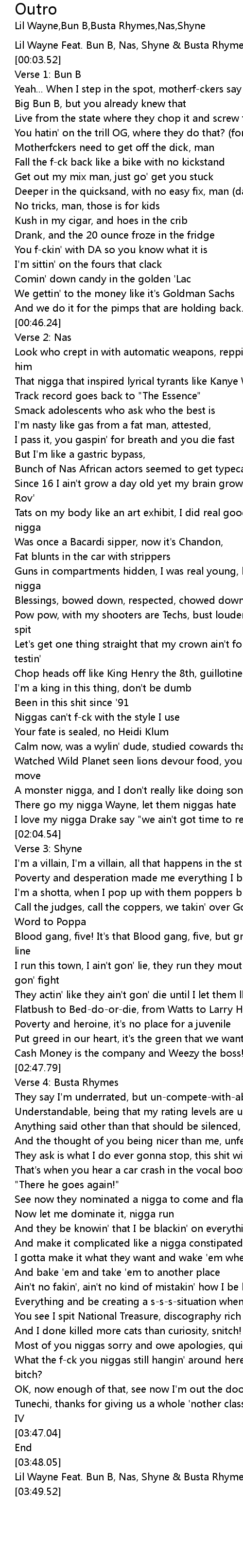 [05:48.52] Lil Wayne Feat. Bun B, Nas, Shyne & Busta Rhymes - Outro