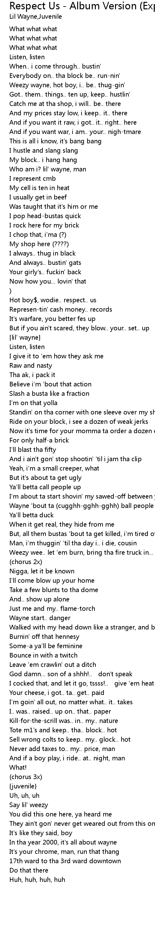 | Weezy wayne, hot boy, i.. be.. thuggin' | |