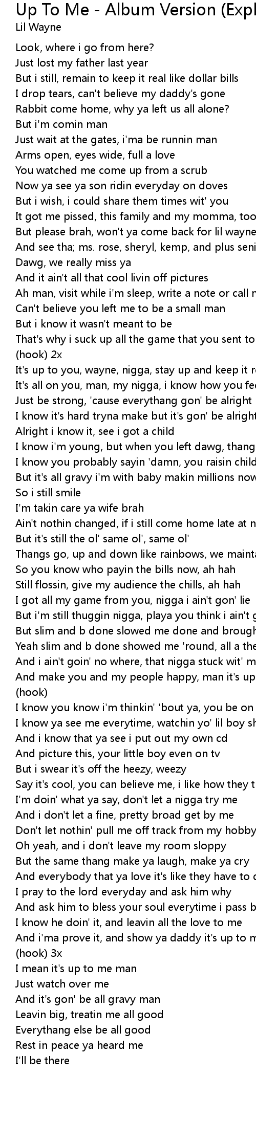 It's up to you, wayne, nigga, stay up and keep it real |