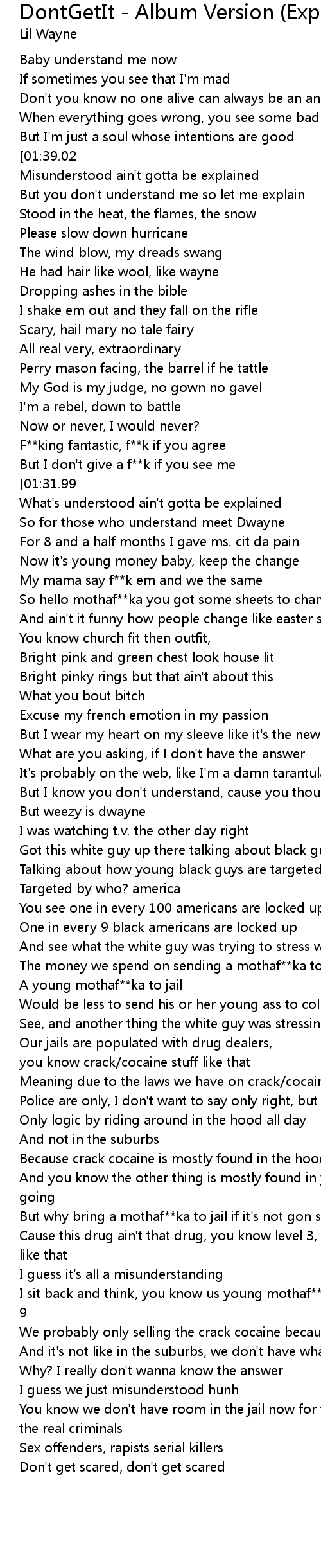 But I know you don't understand, cause you thought lil wayne is weezy |