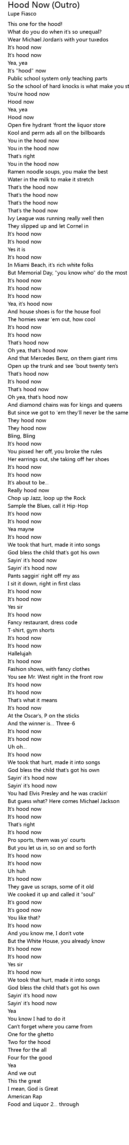 | Song | Hood Now (Outro) |