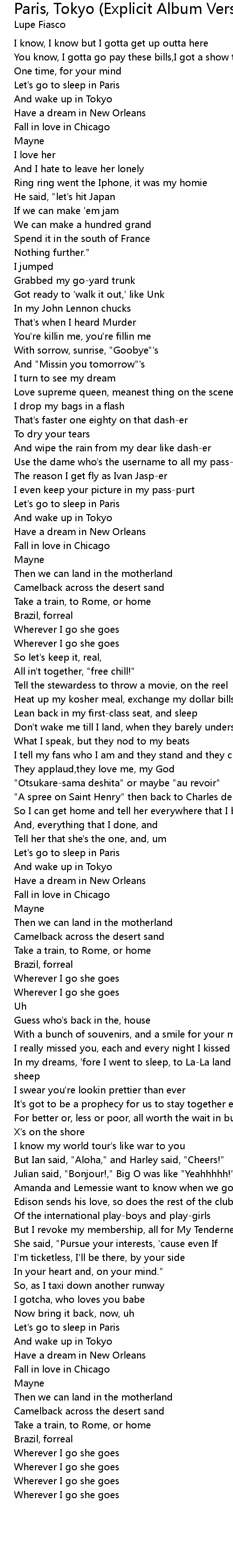 And wake up in Tokyo |