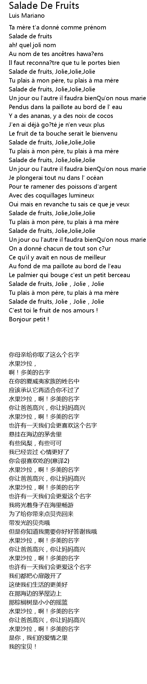 | [01:48.160] | Salade de fruits, Jolie,Jolie,Jolie |