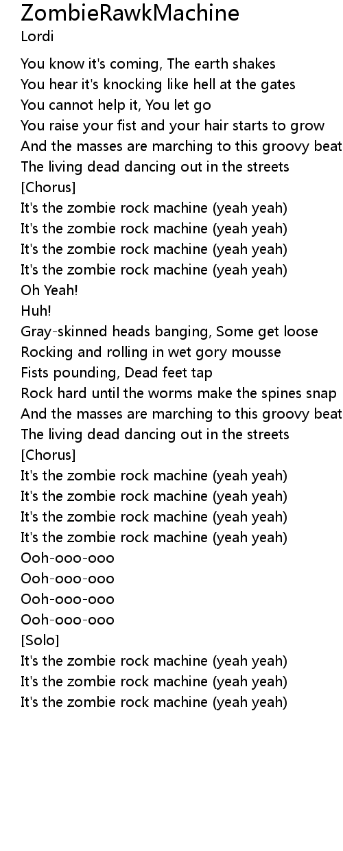 ZombieRawkMachine Lyrics