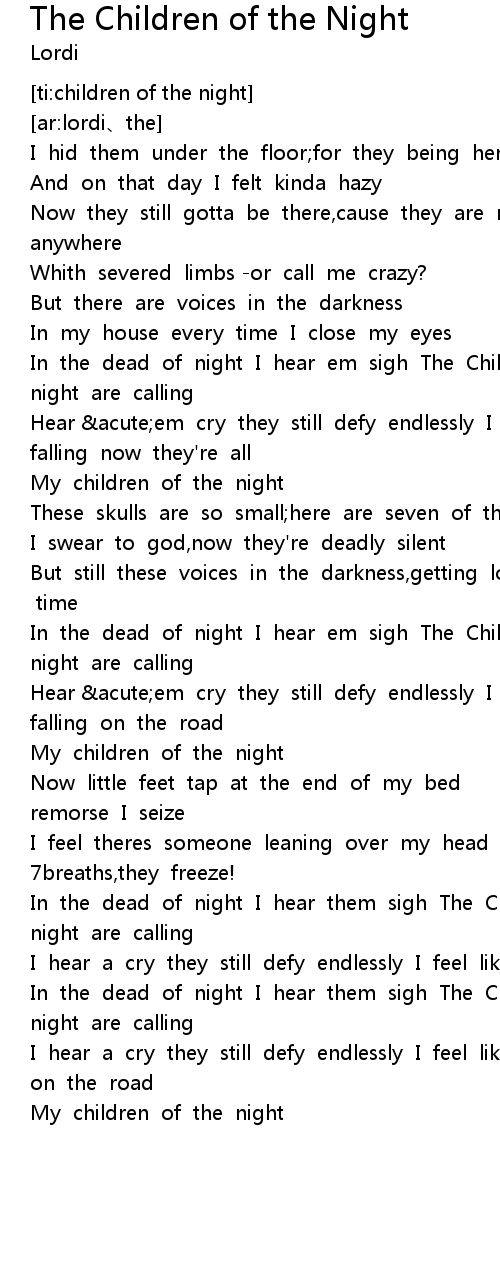 | [03:02.60] | In the dead of night I hear them sigh The Children of the night are calling |
