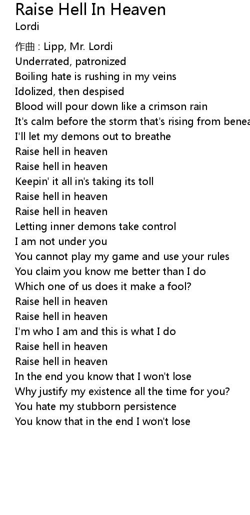 | Raise hell in heaven | |
