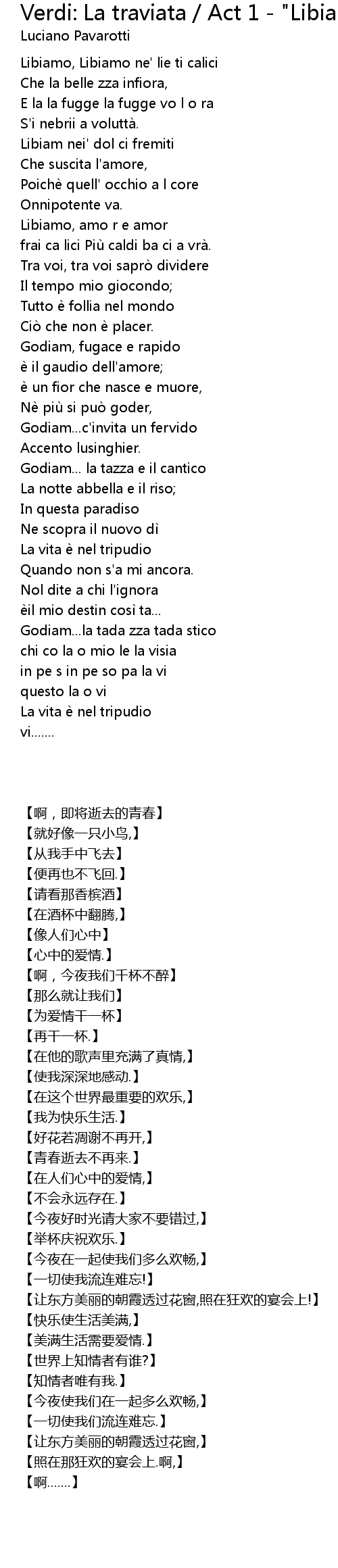| [00:20.74] | Libiamo, Libiamo ne' lie ti calici |