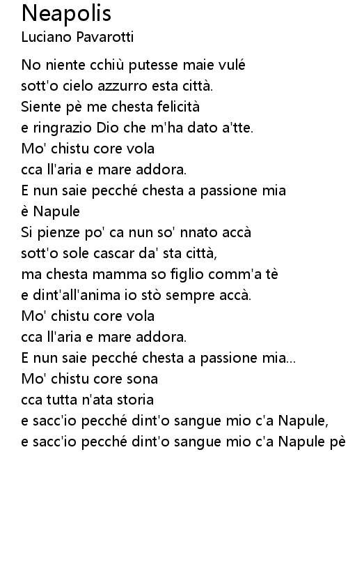 | e sacc' io pecche dint' o sangue mio c' a Napule pe mme. |