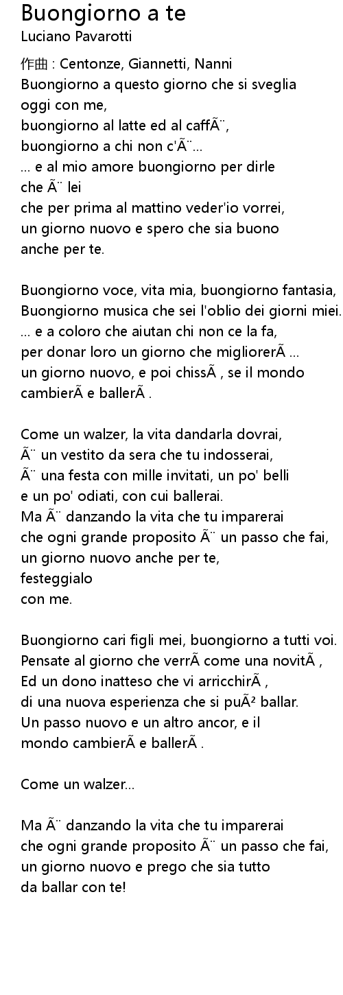 | Buongiorno voce, vita mia, buongiorno fantasia, | |