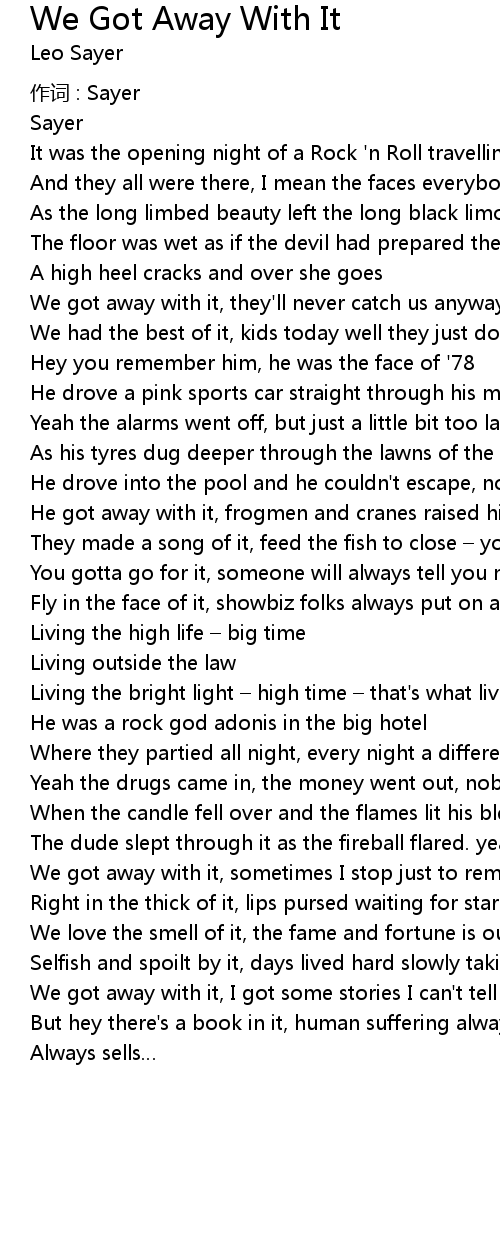 | We got away with it, I got some stories I can' t tell | |