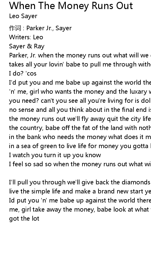 | I feel so sad so when the money runs out what will you do? turn to me, babe, 'n' | |