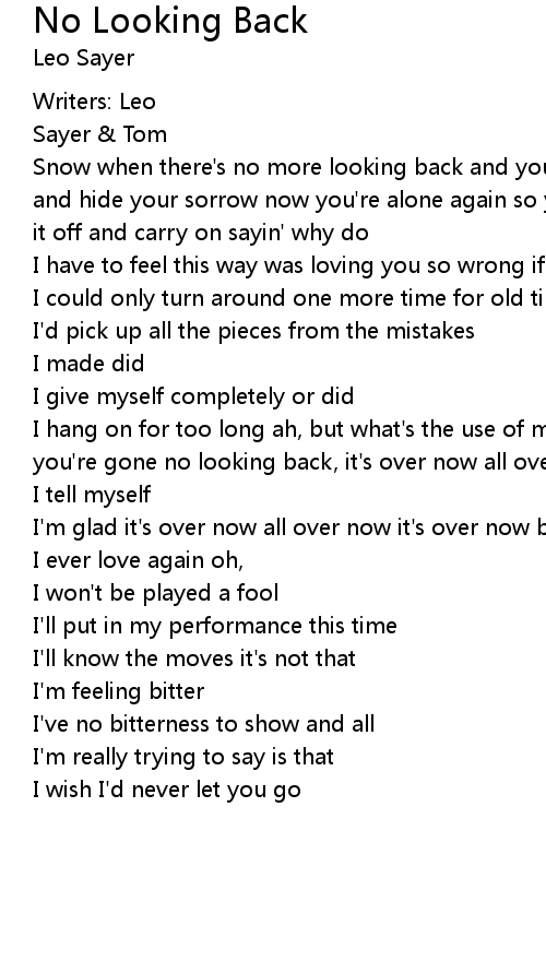 | Snow when there's no more looking back and you feel you've loved in vain you try and hide your sorrow now you're alone again so you block out your emotion laugh it off and carry on sayin' why do | |