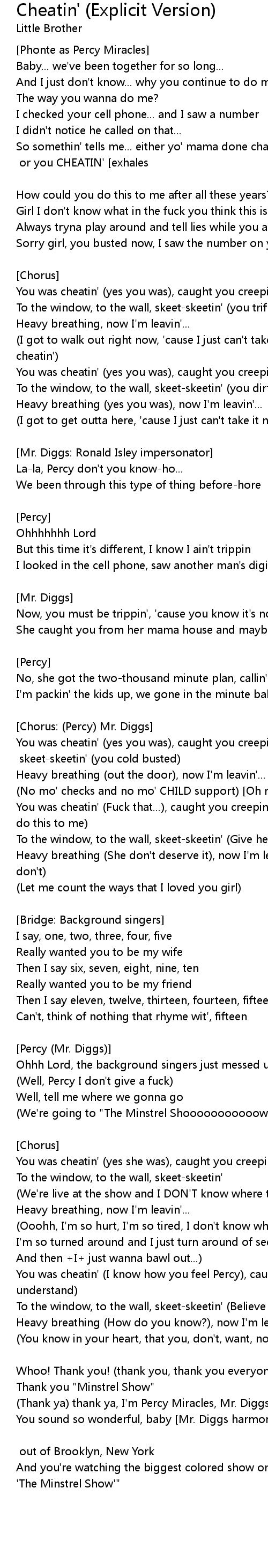 Cheatin' (Explicit Version) Lyrics