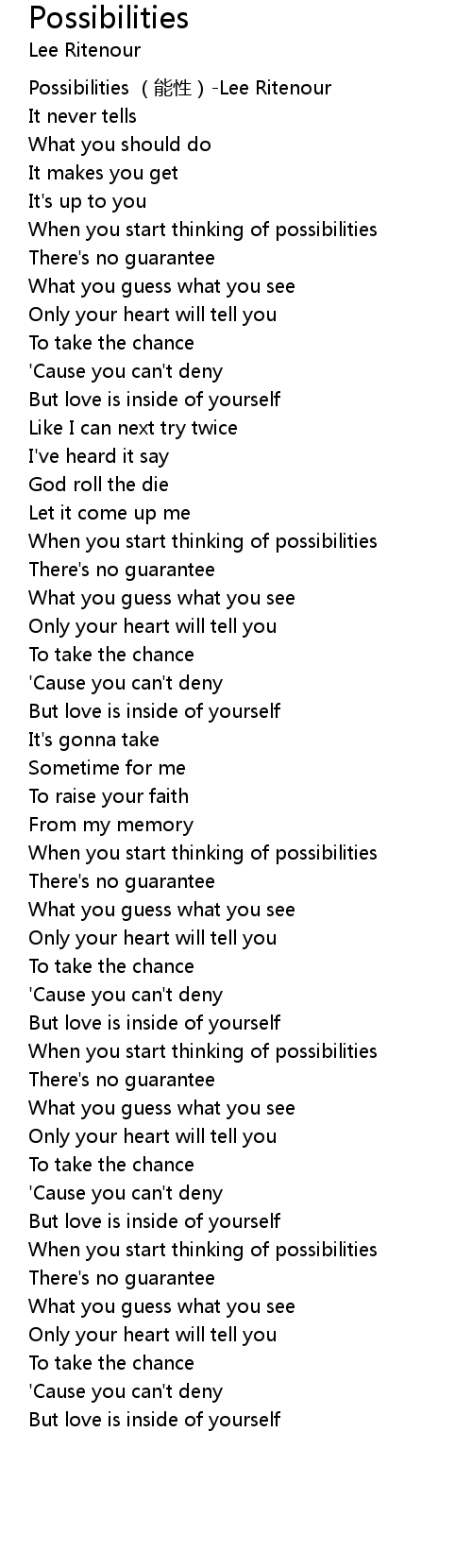 | [00:00.00] | Possibilities néng xìng Lee Ritenour |