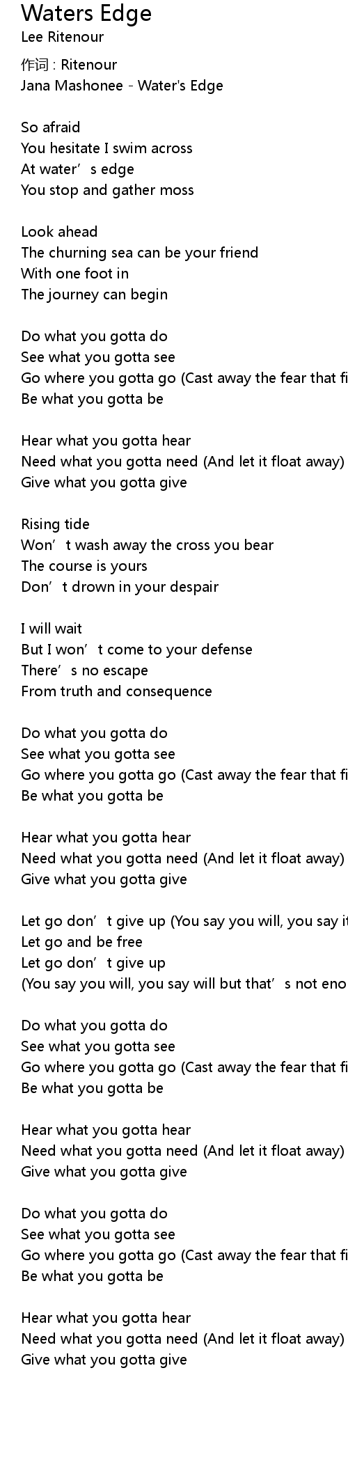 | Song | Waters Edge |