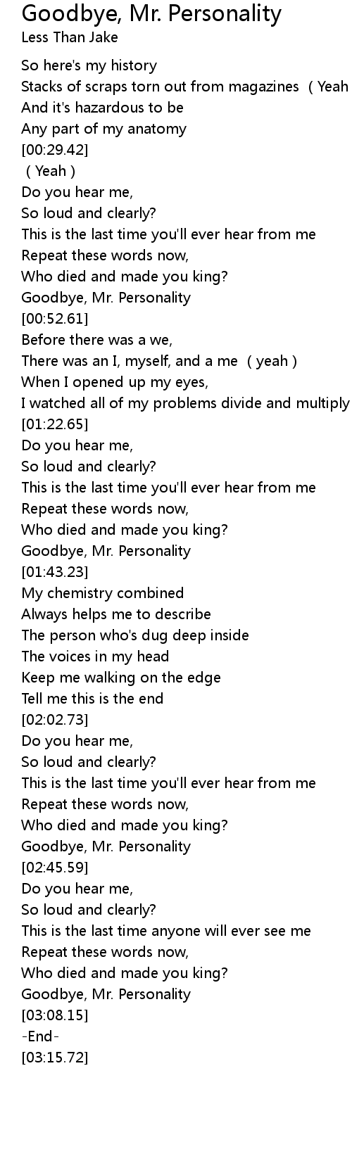 | [03:02.94] | Goodbye, Mr. Personality |