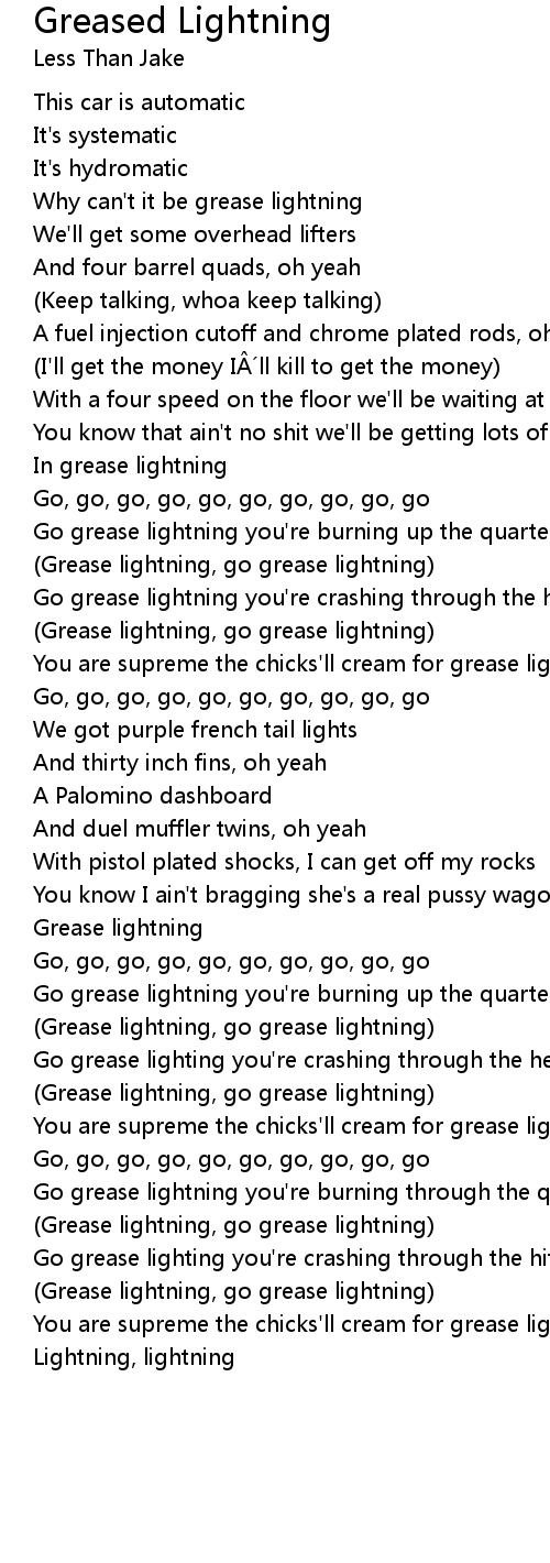 | Go grease lightning you' re crashing through the heat lap trial | |