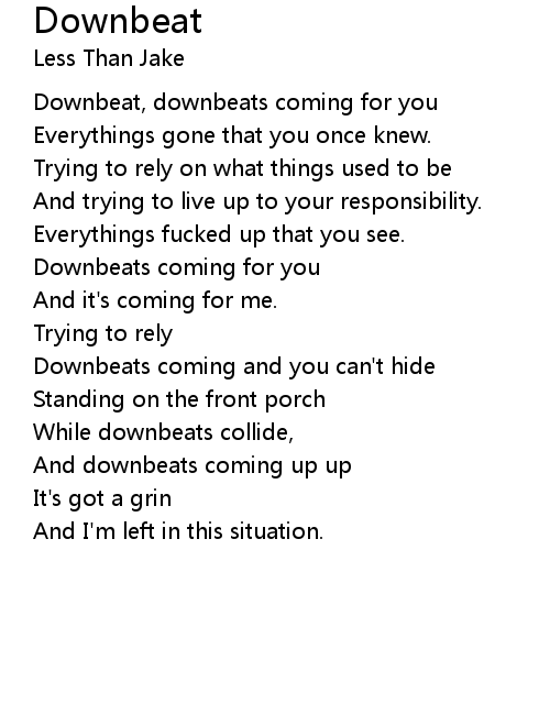 | Downbeat, downbeats coming for you | |