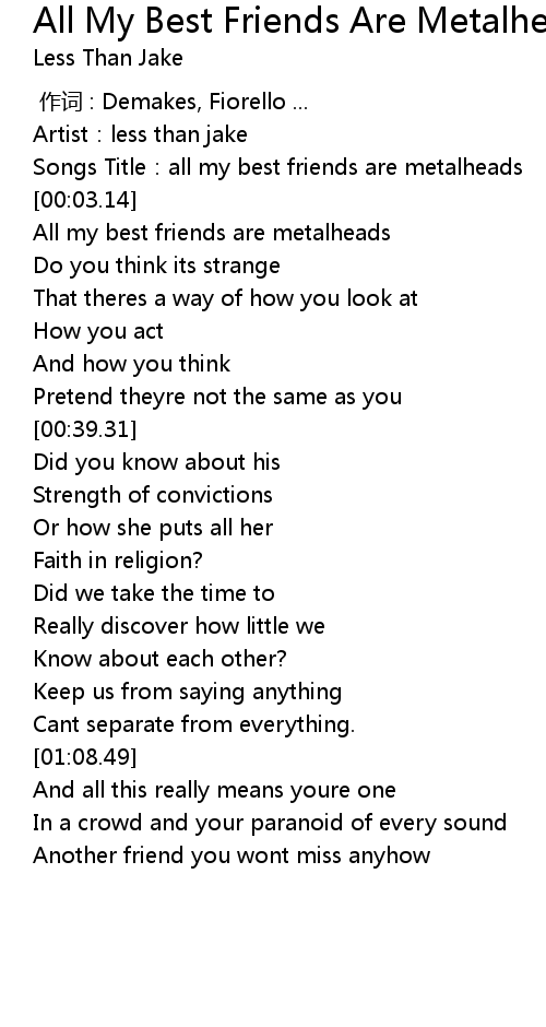 | [00:01.27] | Songs Title: all my best friends are metalheads |