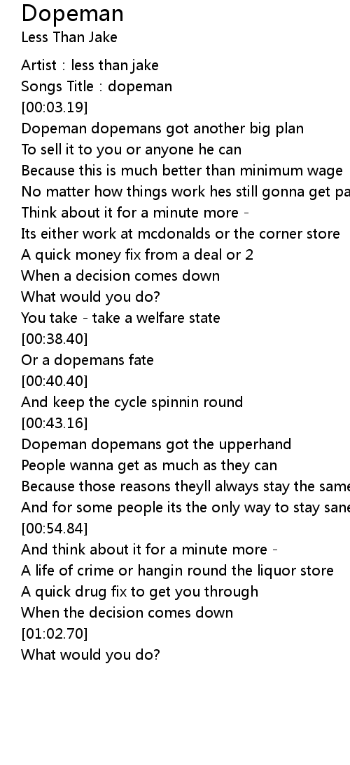 | [00:45.53] | Dopeman dopemans got the upperhand |