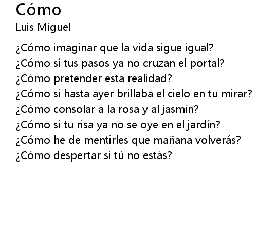 | Co mo si tu risa ya no se oye en el jardi n? | |