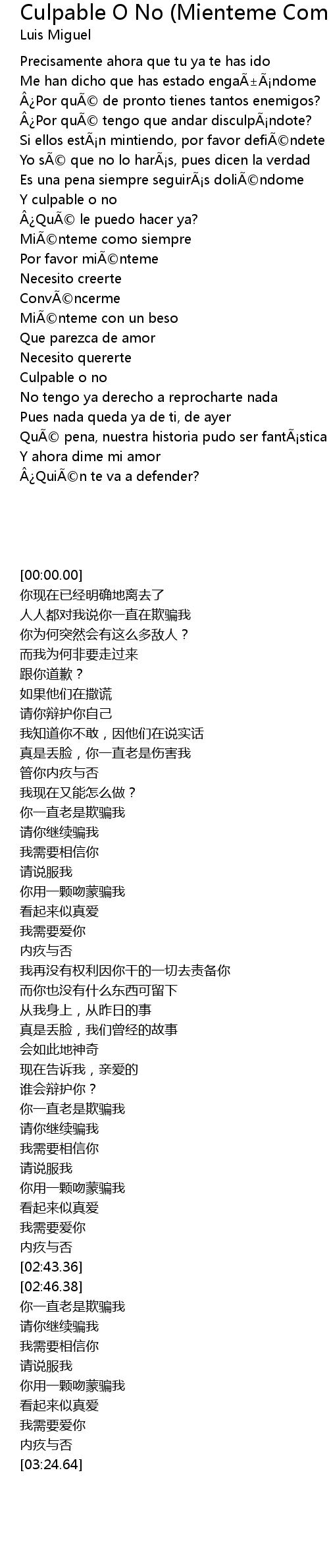 | Song | Culpable O No (Mienteme Como Siempre) |